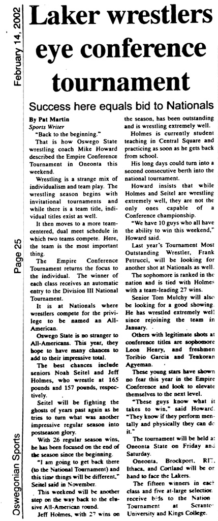 Jeff Holmes (Oswego) > Justin Chandler (Oneonta) decision 4-3