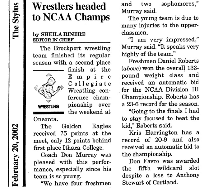 Kris Harrington (Brockport) > Frank Petrucci (Oswego) decision 4-2