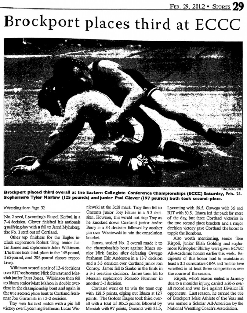 Robert Troy (Brockport) > Lucas Wisniewski (LC) fall 1:10