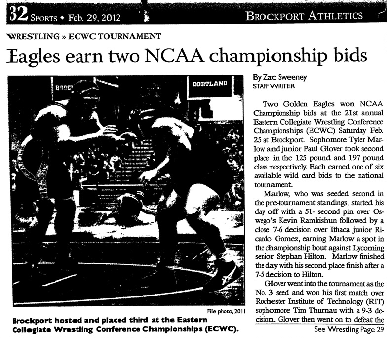 Brad Mayville (Oswego) > Eliah Golding (Brockport) decision 7-3