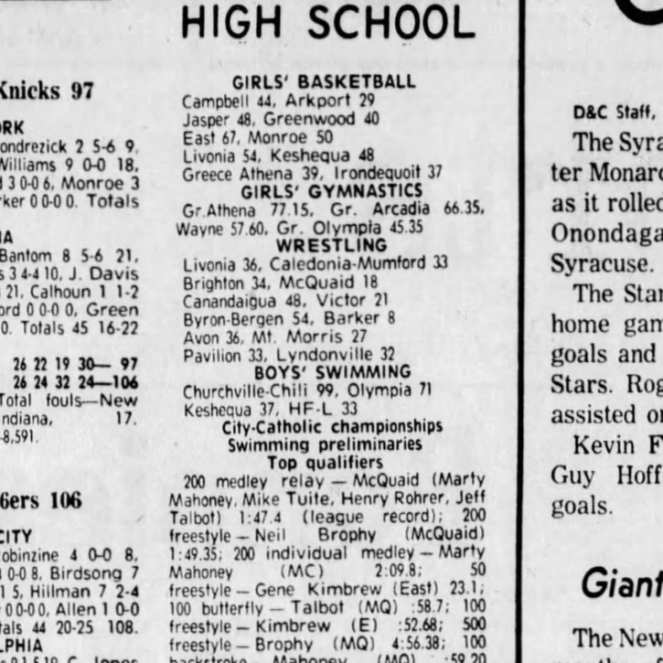 | 1984: | Canandaigua vs. Victor |