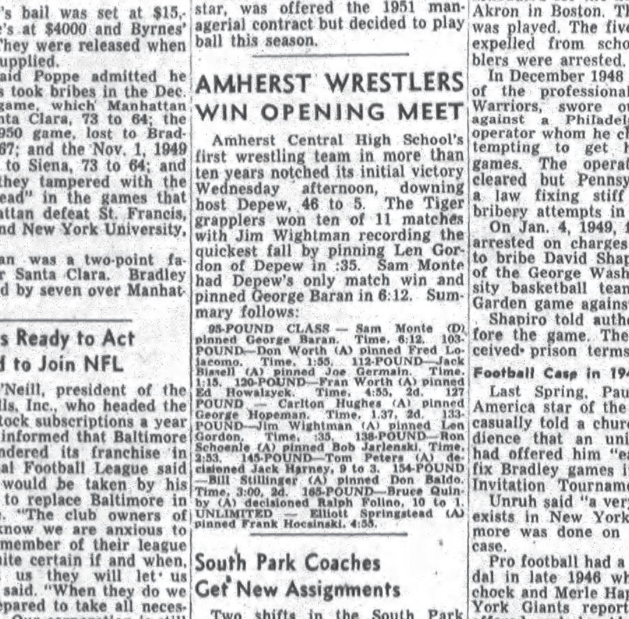 | 1951: | Amherst vs. Depew |