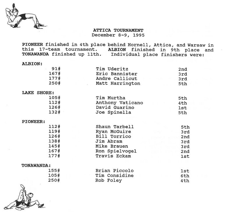Brian Piccolo (Tonawanda) > Greg Laude (Attica) decision 5-1