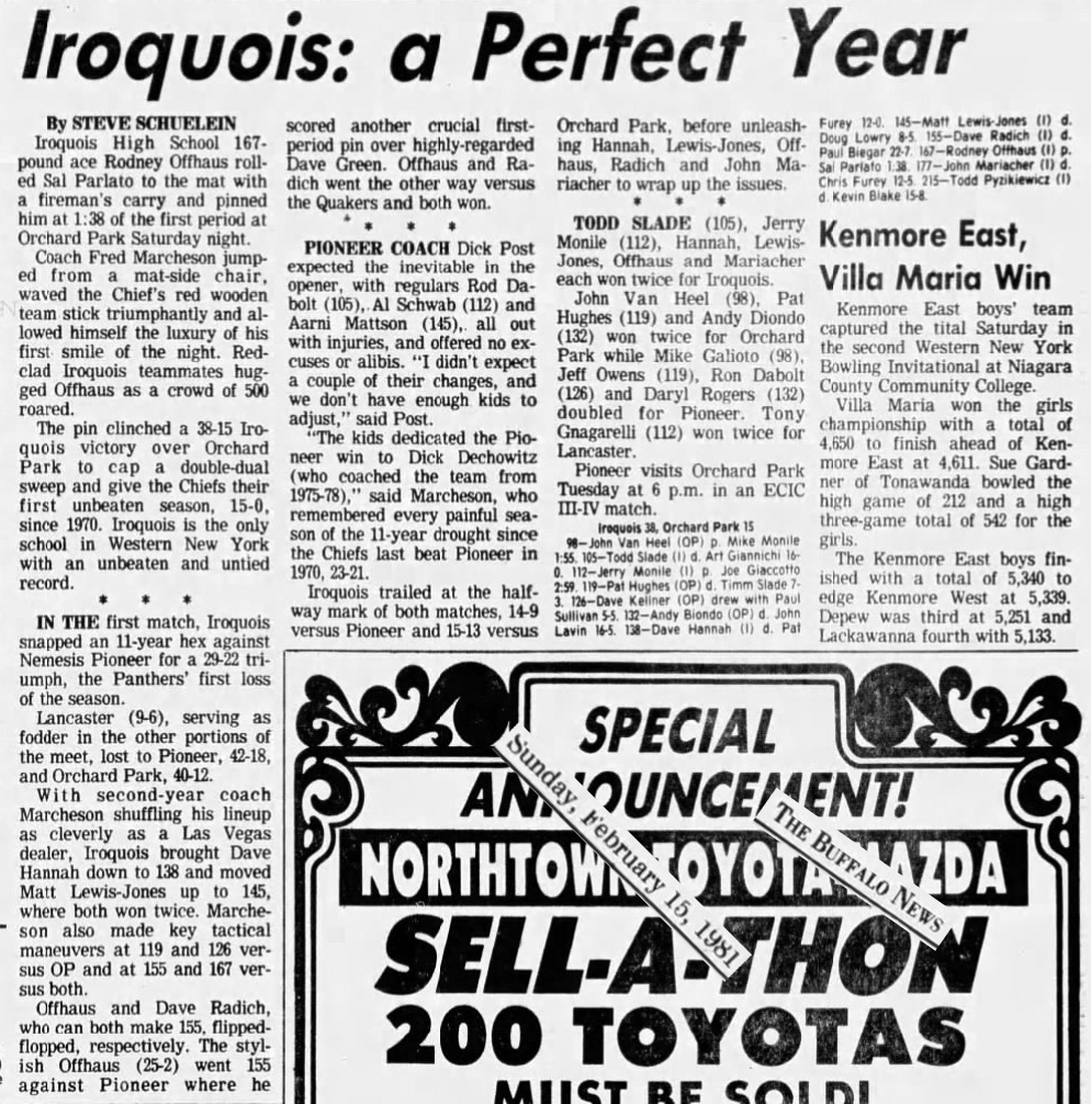 Todd Slade (Iroquois) > Art Giannicchi (OP) superior decision 16-0