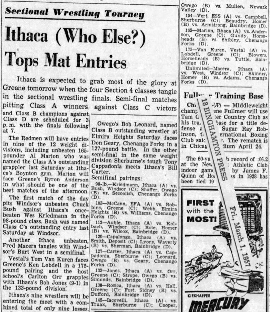 Carlton Orr (Greene) > Jack Stroupe (Owego) fall 3:57