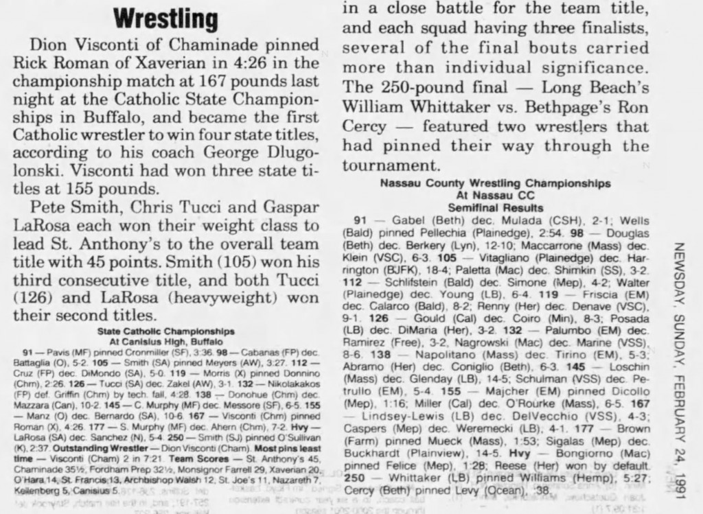 Dion Visconti (Chaminade) > Rick Roman (Xaverian) fall 4:26