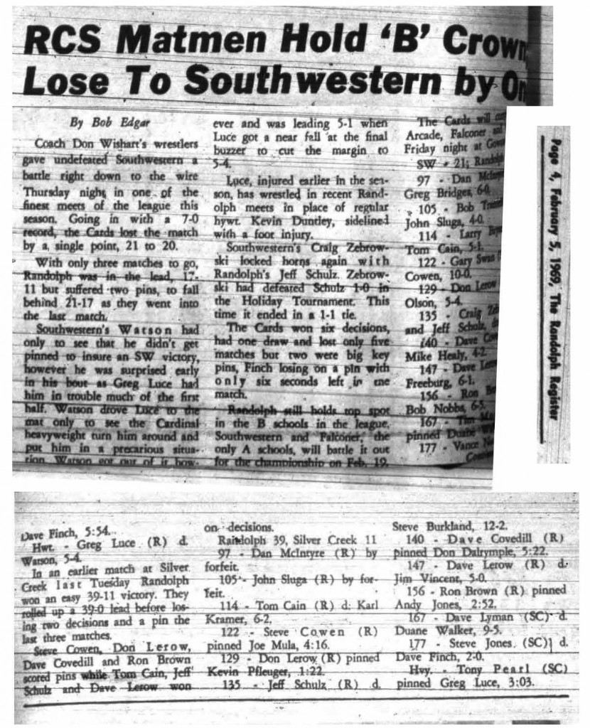 Ron Brown (Randolph) > Bob Nobbs (Southwestern) decision 6-5