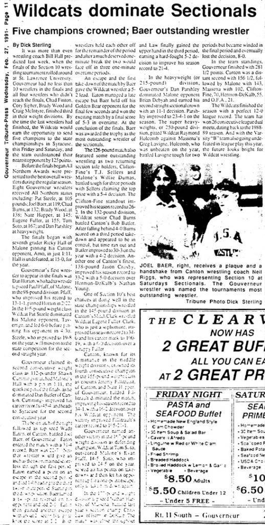Greg Lavigne (Massena) > Raymond Holcomb (Gouverneur) major decision 8-0
