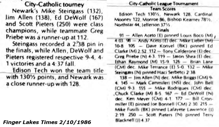Edison Tech (Rochester) [NY] 130.5, Newark [NY] 128, Cardinal Mooney [NY] 122, Monroe (Rochester) [NY] 86, Bishop Kearney [NY] 78.5, Northstar Christian [NY] 44, Jefferson (Rochester) [NY] 37.5