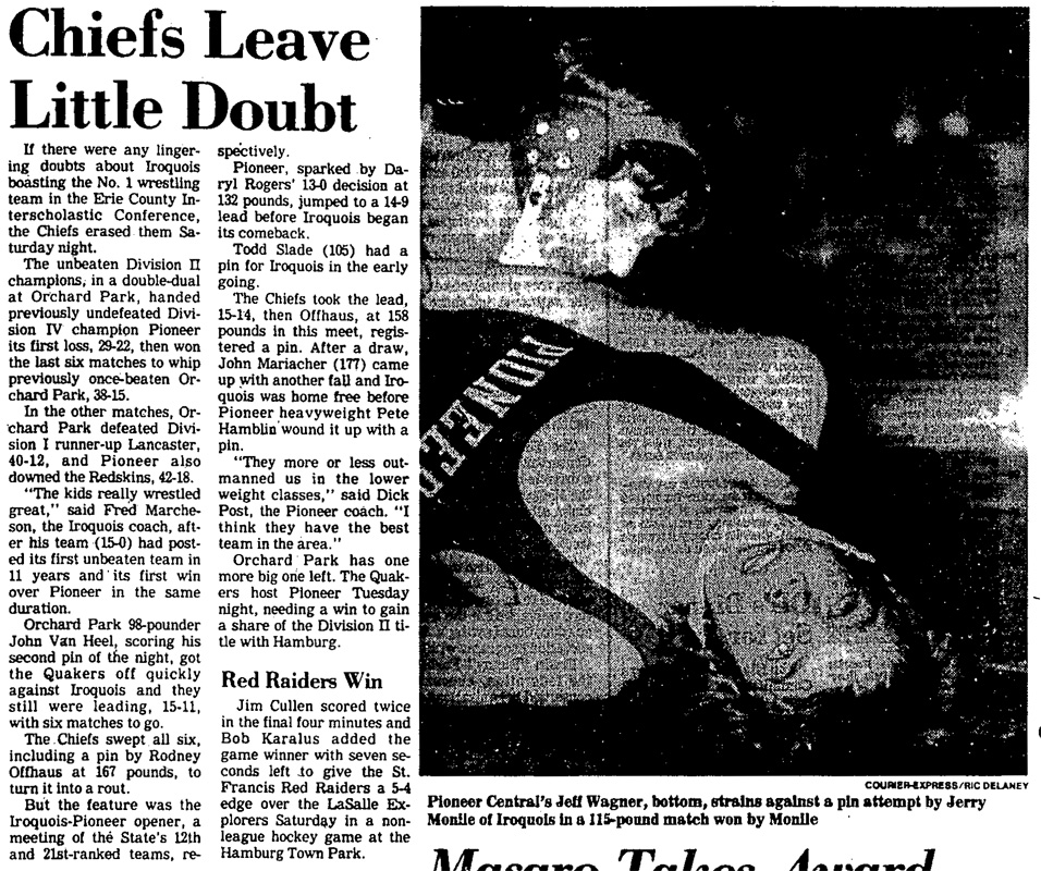 155 Rod Offhaus (Iroquois) > Dave Green (Pioneer) fall