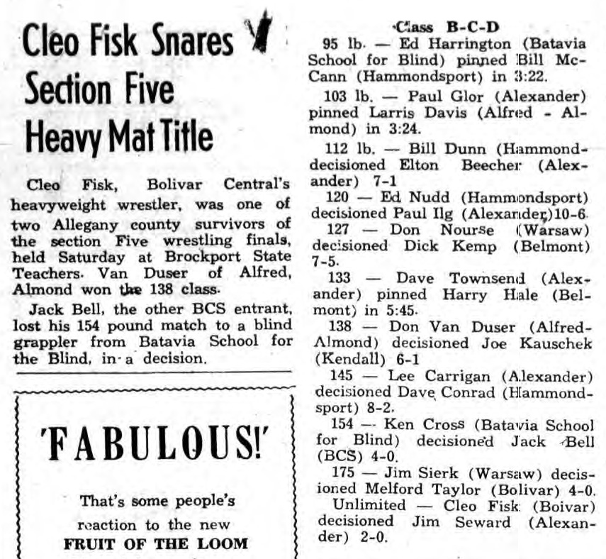 112 William Dunn (Hammondsport) > Alton Beechler (Alexander) decision 7-1
