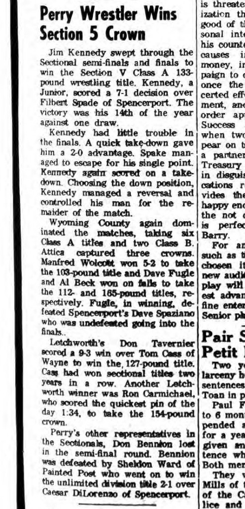 133 Jim Kennedy (Perry) > Filbert Spade (Spencerport) decision 7-1