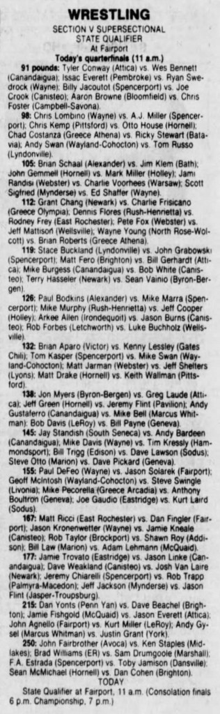 Mike Burgess (Canandaigua) > Bill Gerhardt (Attica) decision 5-2