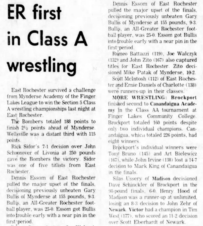 Bob Lawrence (Batavia) > Guy Parker (Canandaigua) fall 5:20