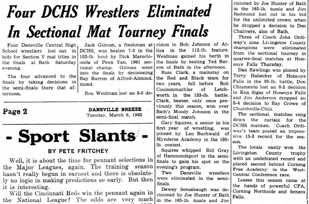 Tom Weber (Attica) > Ron Weidman (Dansville) decision 8-0
