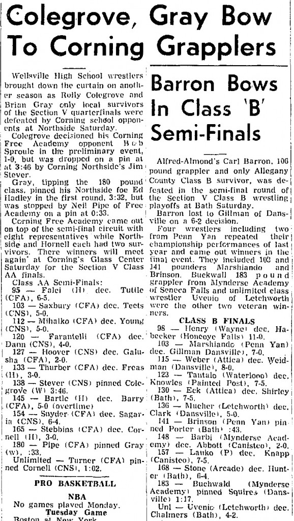 John Lauko (Perry) > Jim Knapp (Canisteo) decision 7-5
