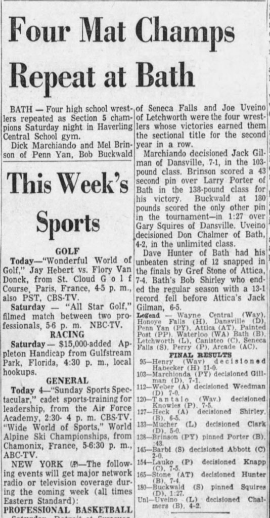 Bob Buchwald (Mynderse) > Gary Squires (Dansville) fall 1:47
