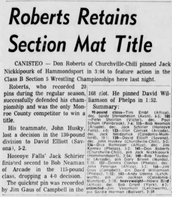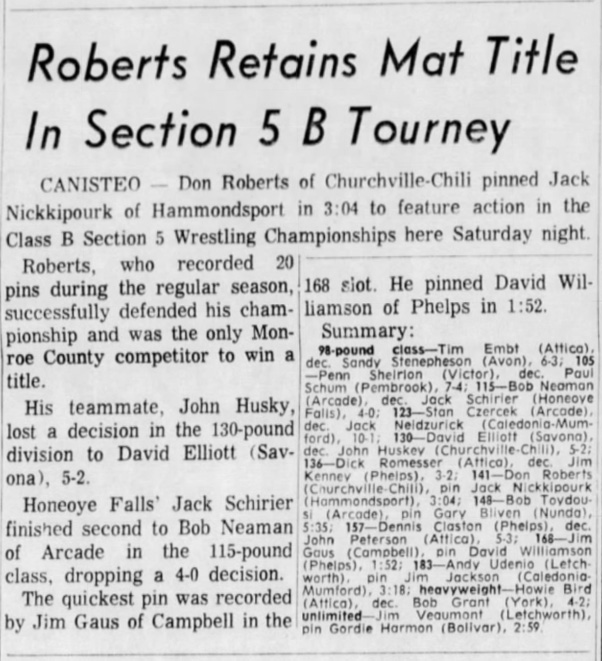 Bob Tojdowski (Arcade) > Gary Bliven (Keshequa) fall 5:35