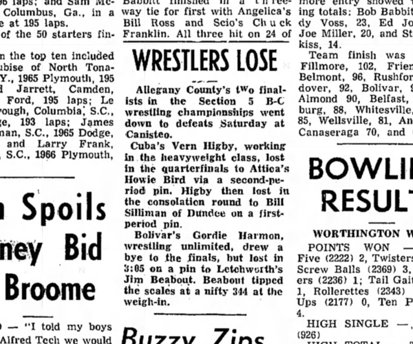 Jim Beaumont (Letchworth) > Gordon Harmon (Bolivar) fall 2:59