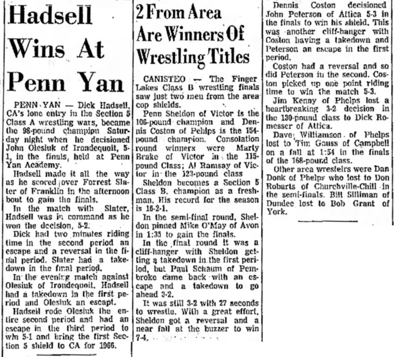 Bruce Dickerson (Dundee) > Thomas Richardson (Canisteo) decision 8-6