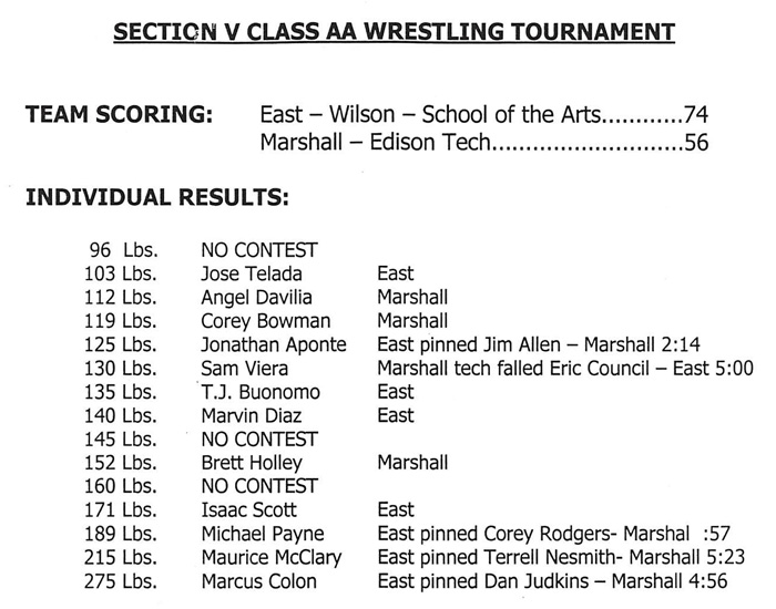 East High (Rochester) (+Wilson+SOTA) [NY] 74, Marshall (Rochester) (+Edison) [NY] 56