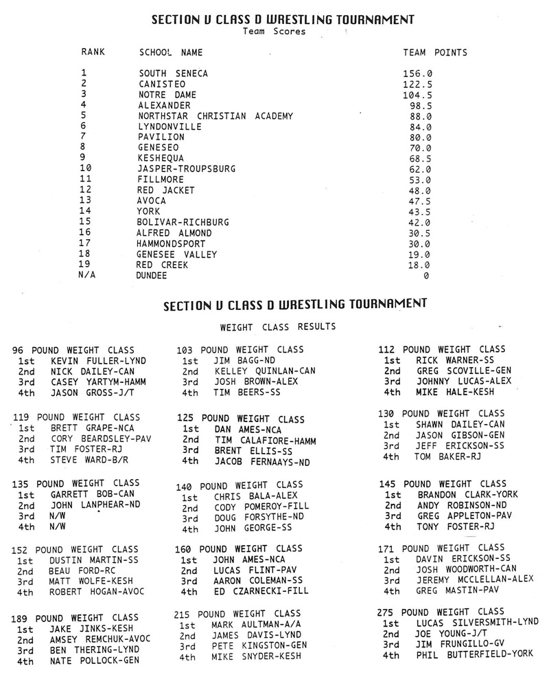 96 Kevin Fuller (Lyndonville) > Nick Dailey (Canisteo) decision 6-3