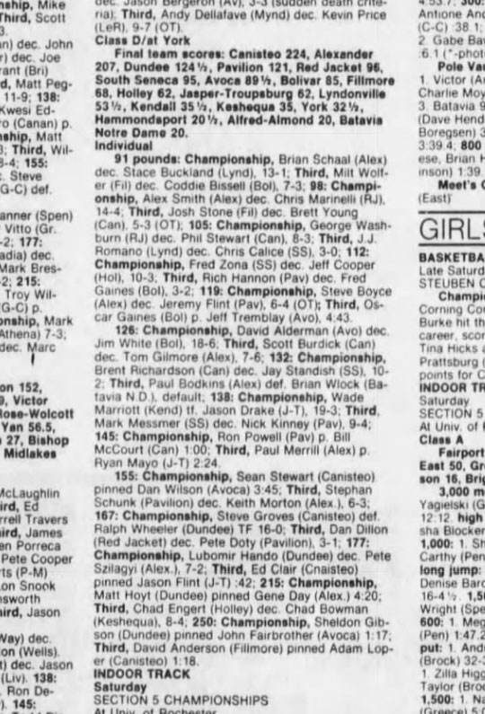 Brian Schaal (Alexander) > Steve Buckland (Lyndonville) major decision 13-1