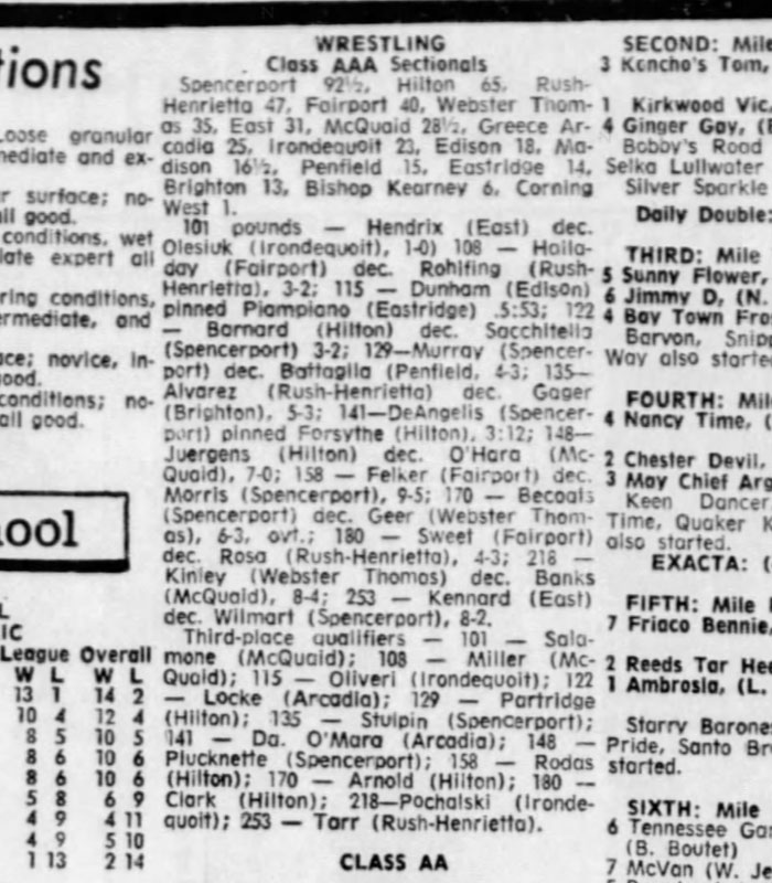 Frank DeAngelis (Spencerport) > Carl Forsythe (Hilton) fall 3:12