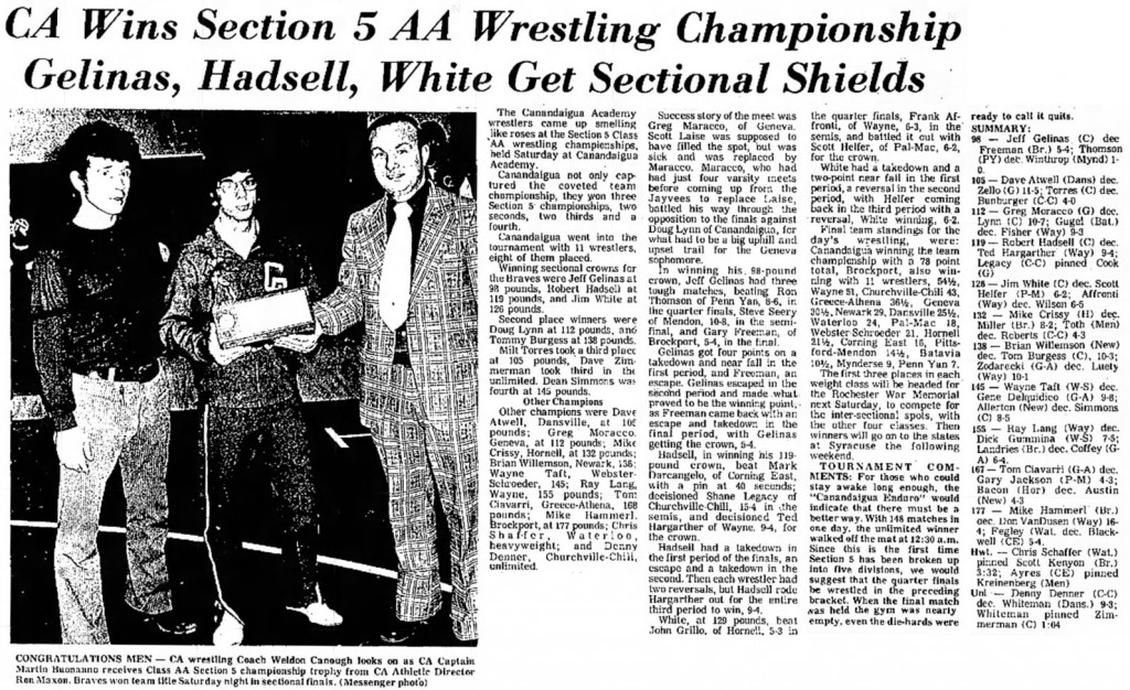 Robert Hadsell (Canandaigua) > Ted Hargarther (Wayne) decision 9-4