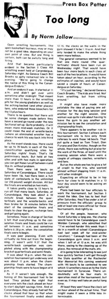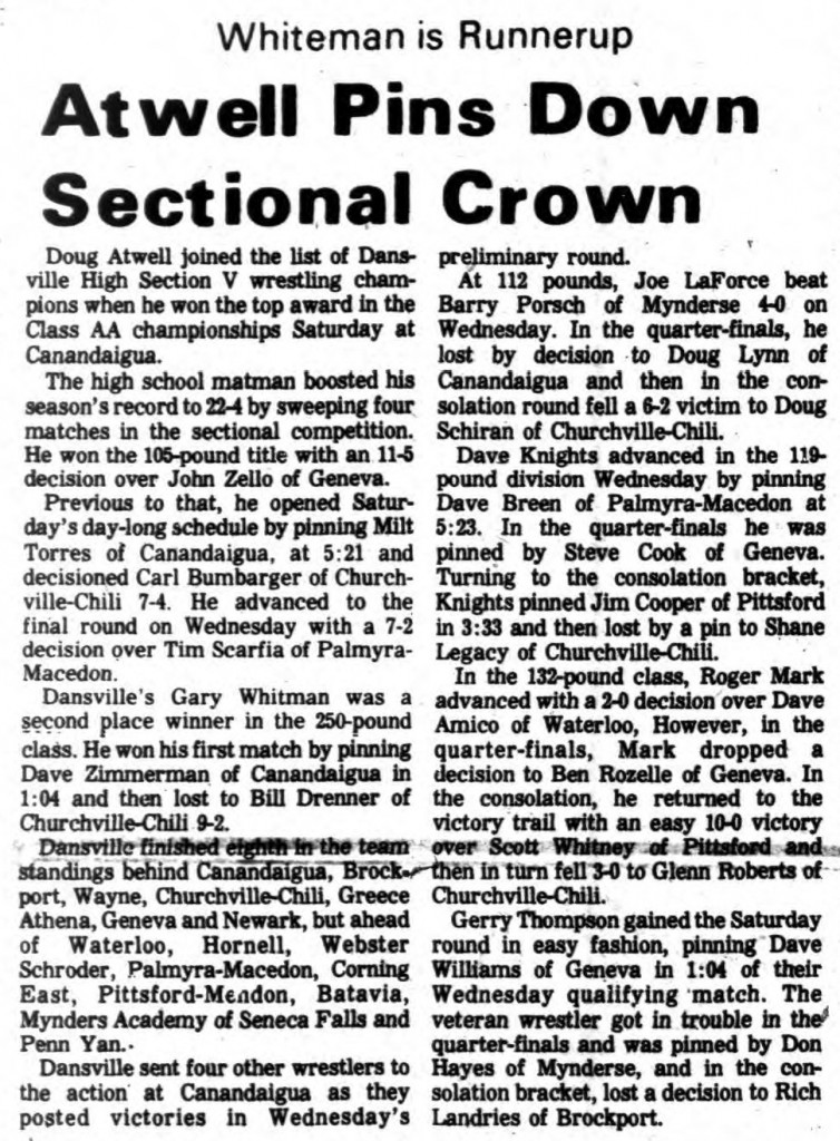Doug Atwell (Dansville) > John Zello (Geneva) decision 11-5