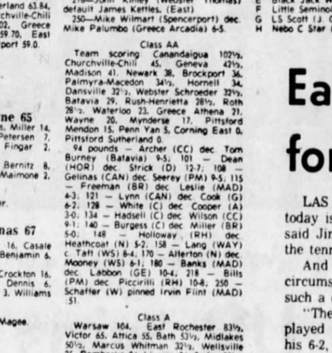 Nick Dean (Hornell) > Lou Strick (Dansville) decision 12-7