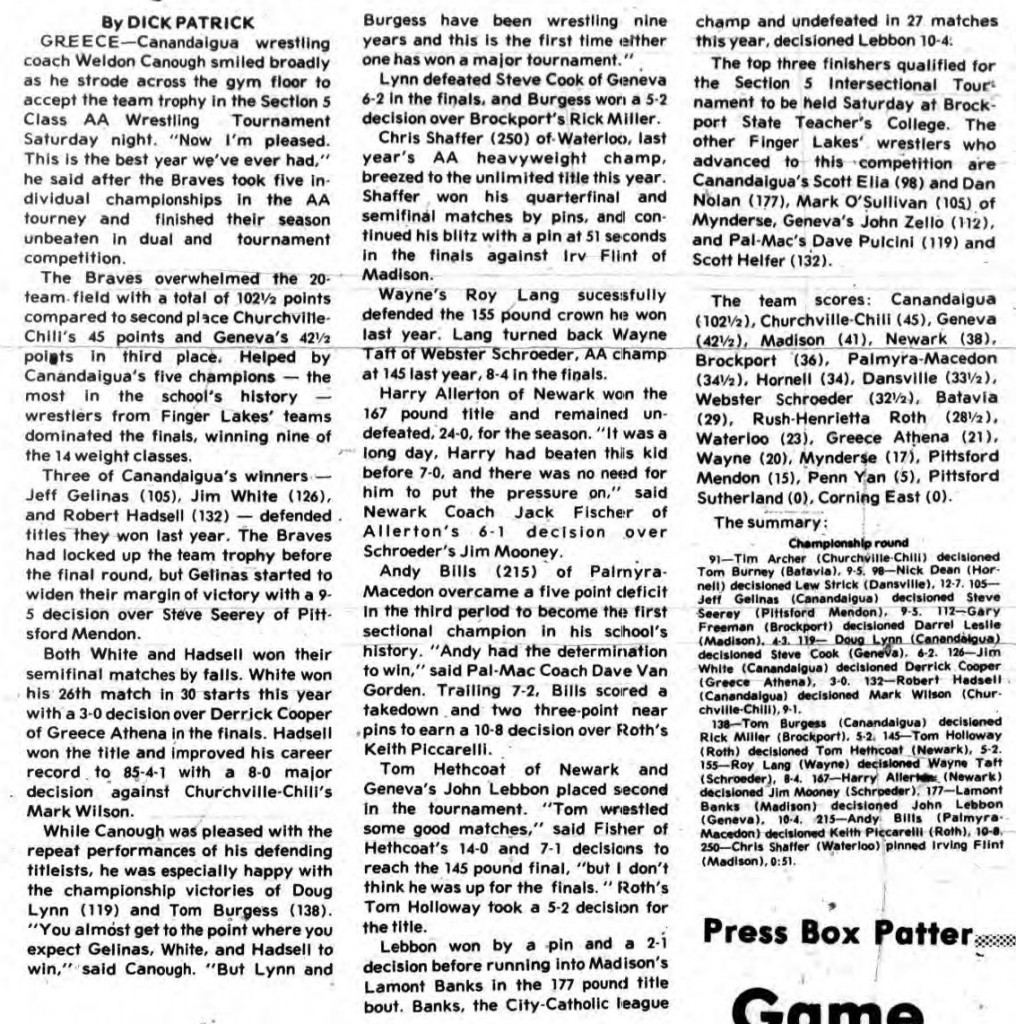 Jim White (Canandaigua) > Derrick Cooper (GA) decision 3-0
