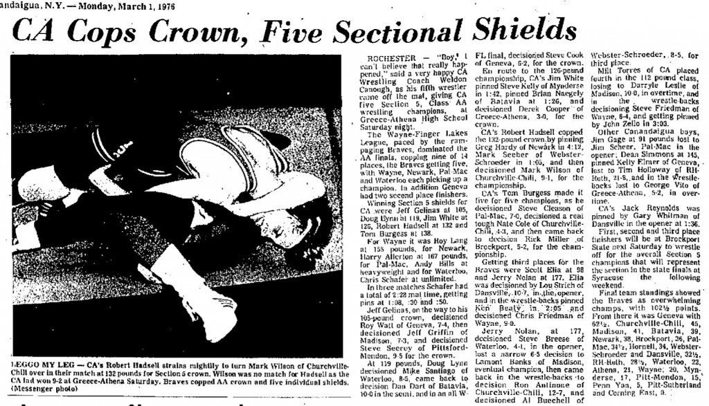 Robert Hadsell (Canandaigua) > Mark Willson (CC) major decision 9-1