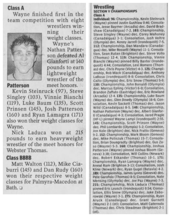 140 Nate Patterson (Wayne) > Albert Gianforti (Canandaigua) decision 4-3