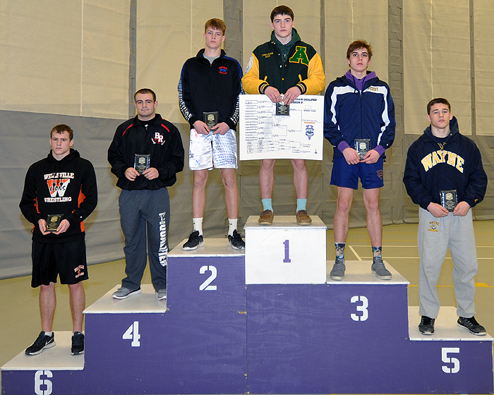 Jack Freischlag (Wayne) > Ryan Dunham (Wellsville) major decision 8-0