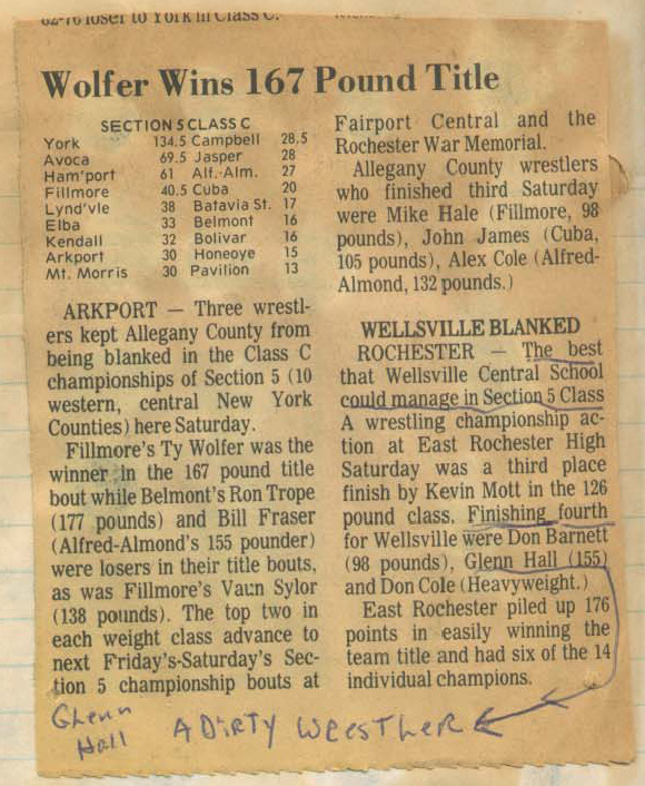 Tom West (Victor) > Gary Bullis (Mynderse) decision 7-0