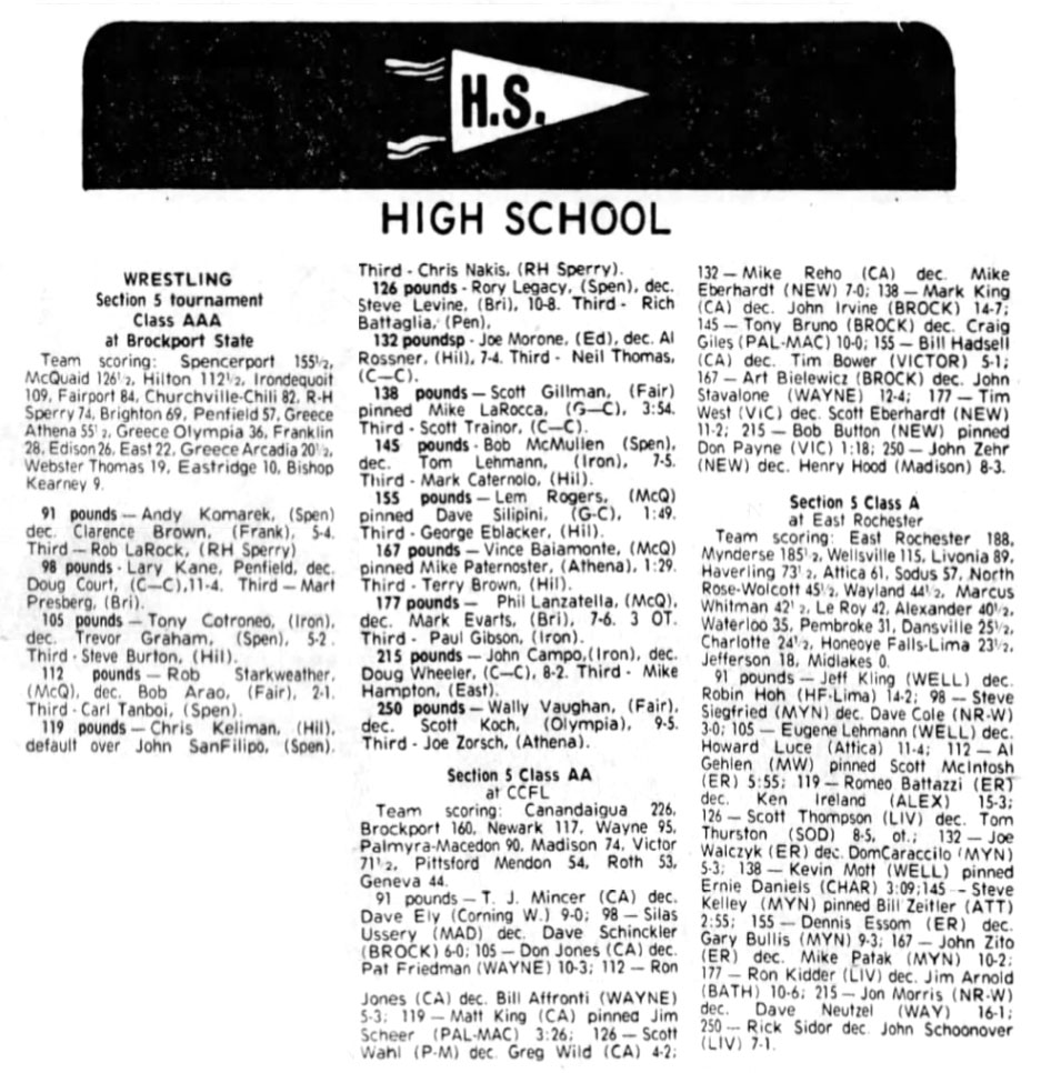 Bob McMullen (Spencerport) > Tom Lehmann (Irondequoit) decision 7-5