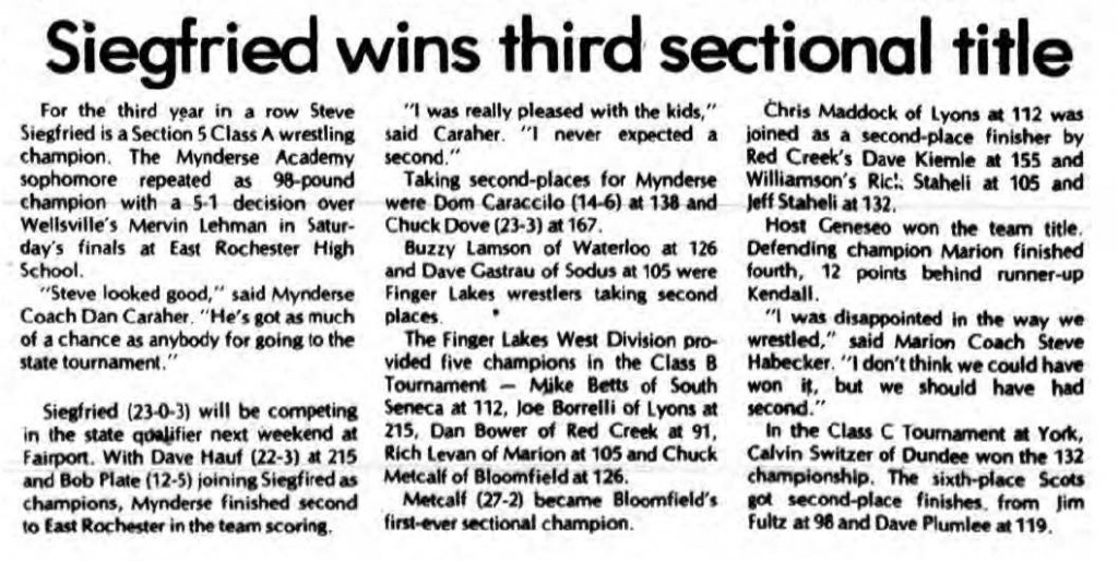Steve Siegfried (Mynderse) > Mervin Lehman (Wellsville) decision 5-1