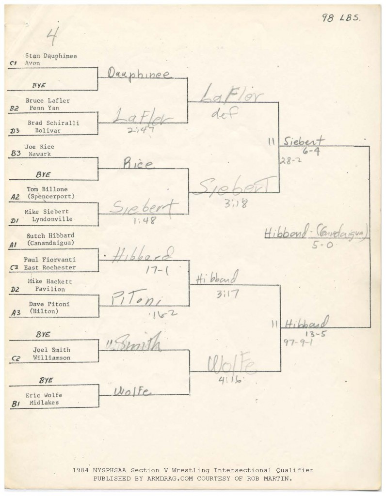 98 Butch Hibbard (Canandaigua) > Mike Siebert (Lyndonville) decision 5-0