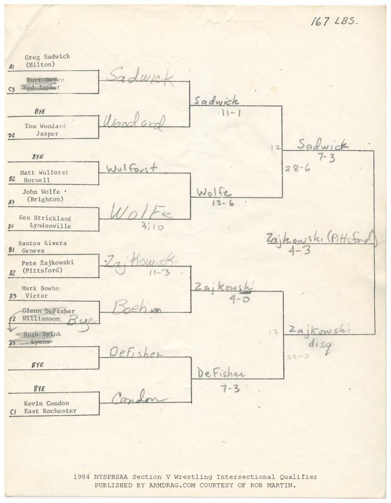 167 Pete Zajkowski (Pittsford) > Greg Sadwick (Hilton) decision 4-3
