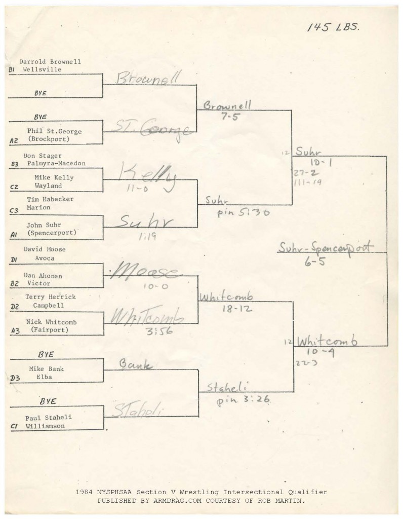 145 John Suhr (Spencerport) > Darrold Brownell (Wellsville) major decision 10-1