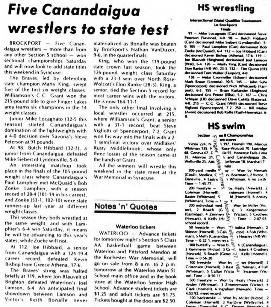 105 Paul Lamphier (Canandaigua) > Dale Chapin (Campbell) decision 8-3