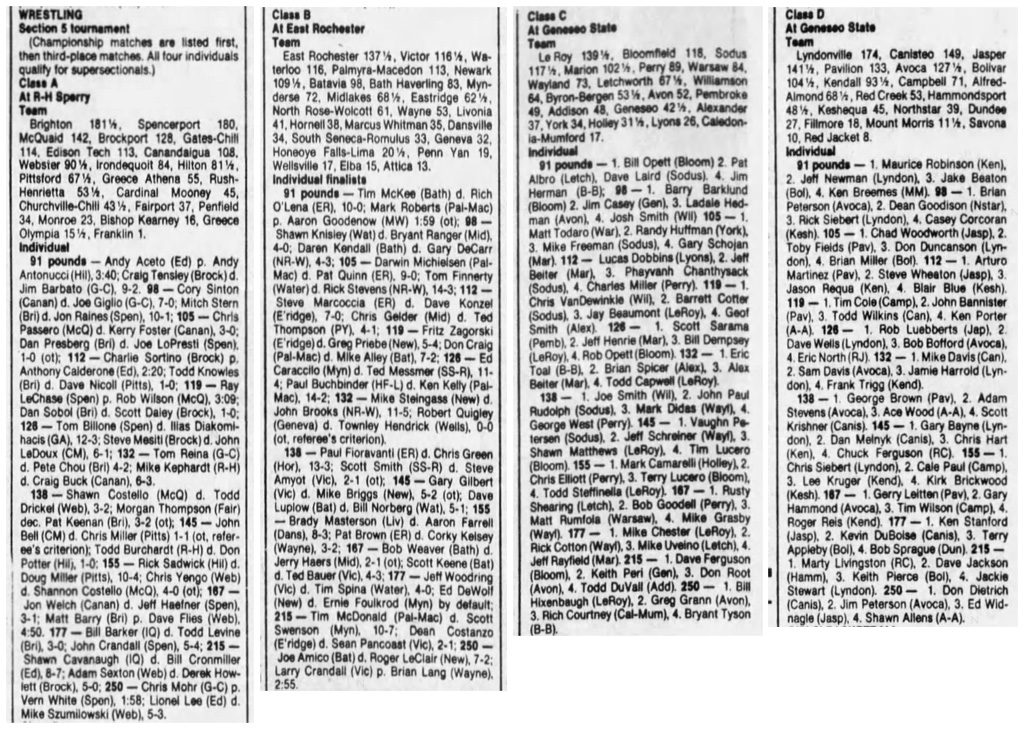 Dave Ferguson (Bloomfield) > Keith Peri (Geneseo) fall 5:59