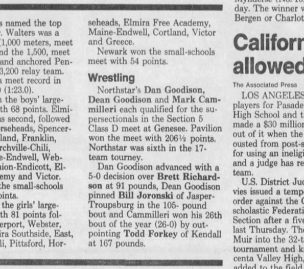 Brent Walton (Pavilion) > Rich Pierce (Canisteo) decision 6-5