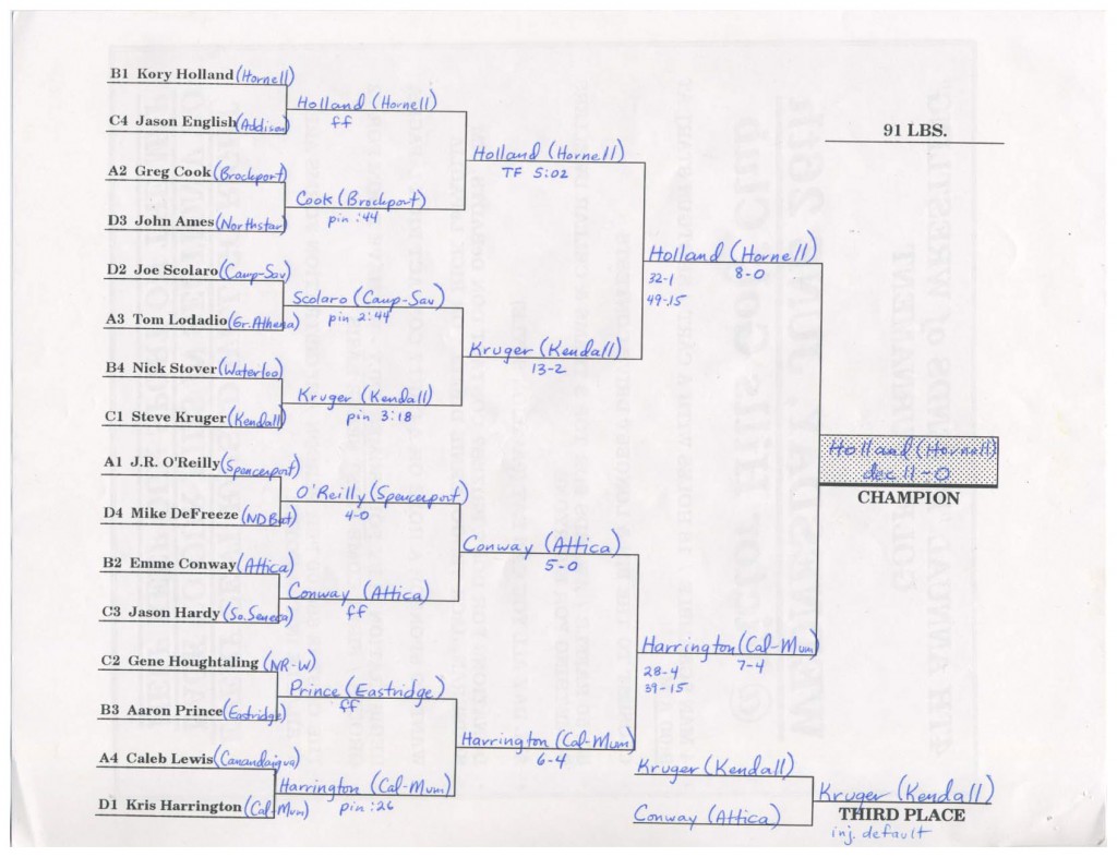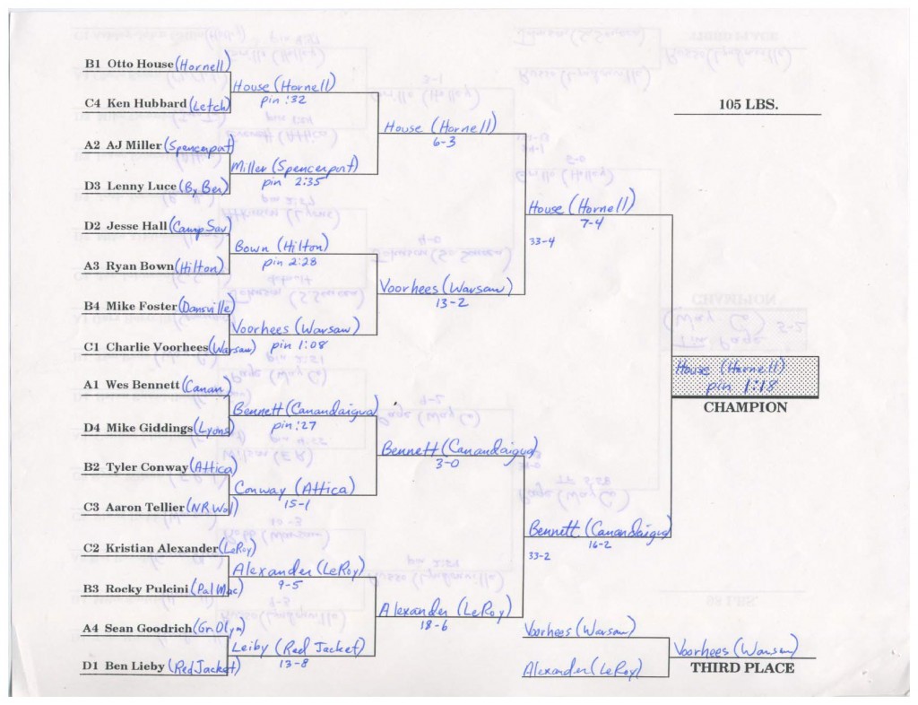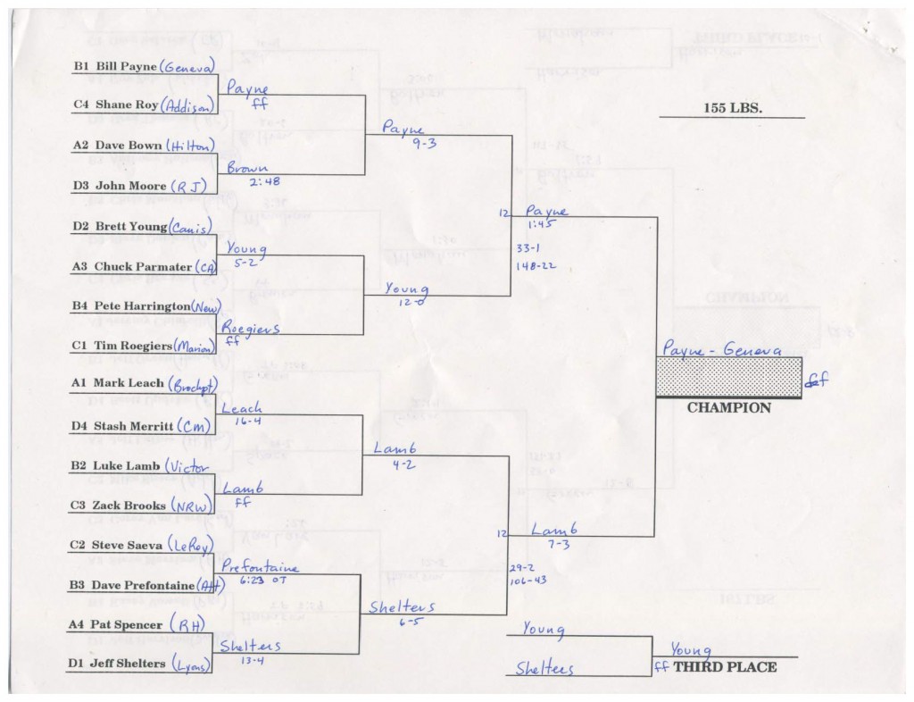 Brett Young (Canisteo) > Jeff Shelters (Lyons) forfeit