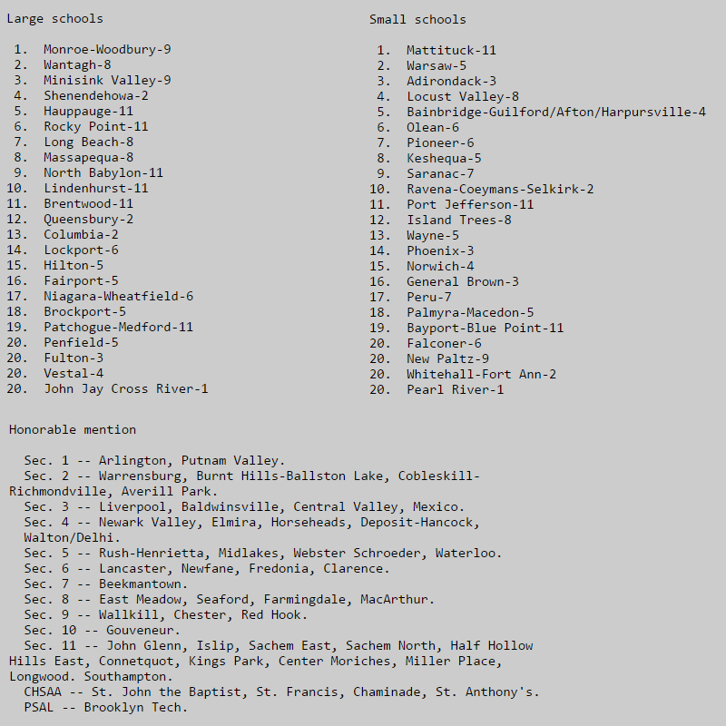 Massapequa (NYS #8) [NY] Minisink Valley (NYS #3) [NY] Rocky Point (NYS #11) [NY] Shenendehowa (NYS #4) [NY]