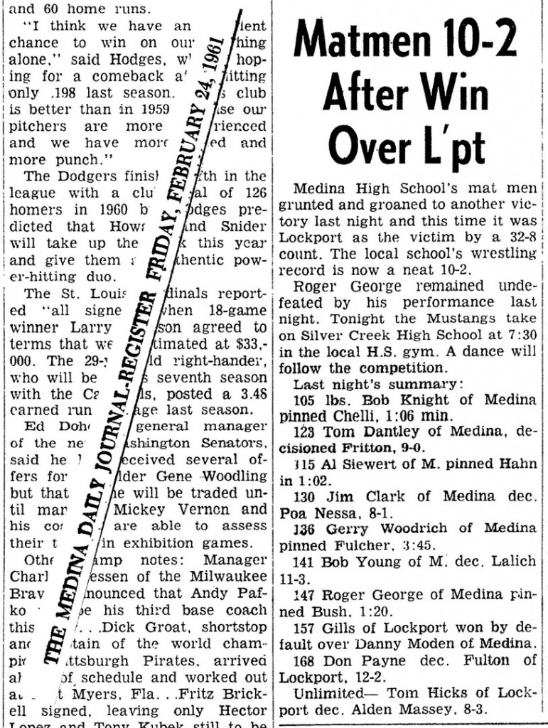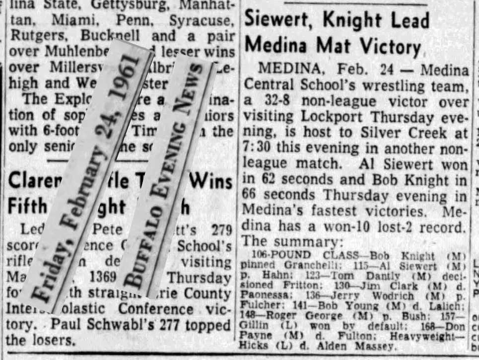 Bob Knight (Medina) > Gary Granchelli (Lockport) fall 1:06