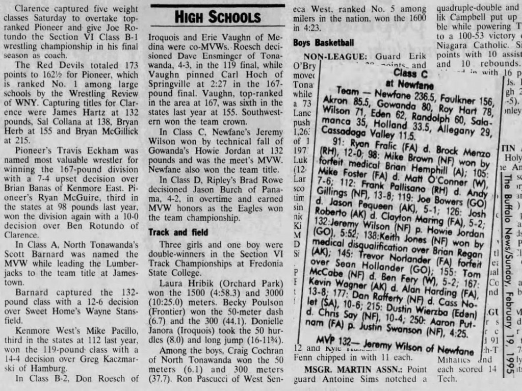 Jason Craumer (Randolph) > Shawn Cleveley (Newfane) decision 6-4