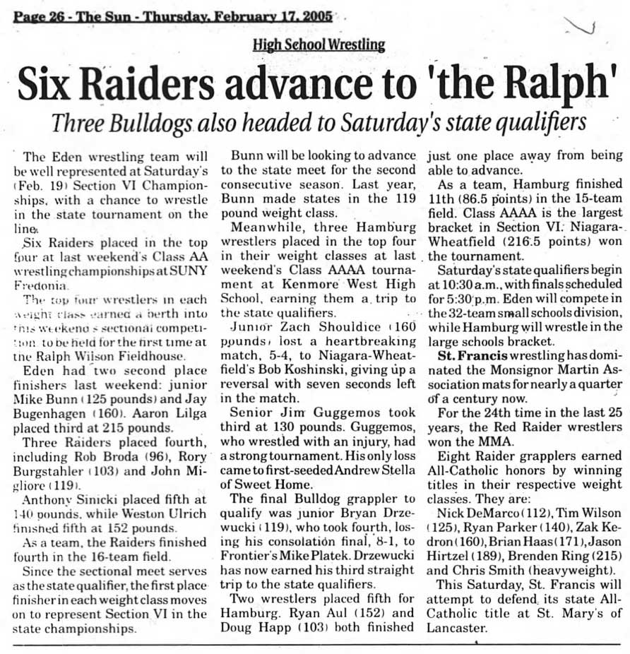 Gary Aloisio (WN) > Ryan Kelkenberg (Clarence) major decision 12-0