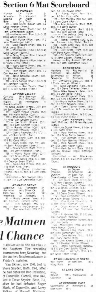 Dan Woodfield (MG) > Jim Payne (Portville) decision 3-0